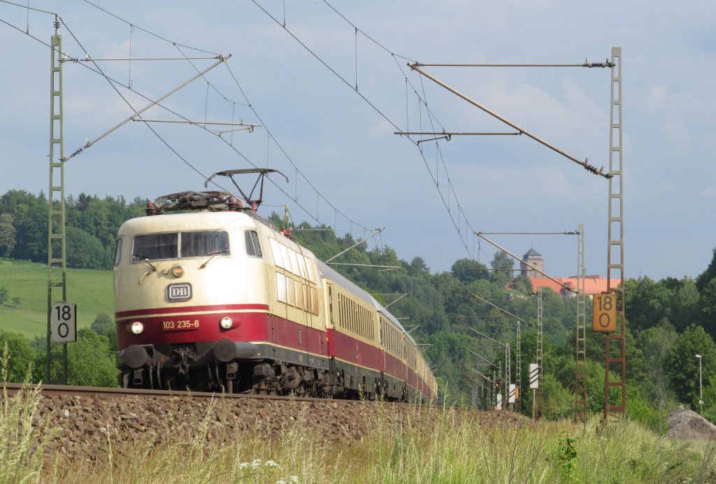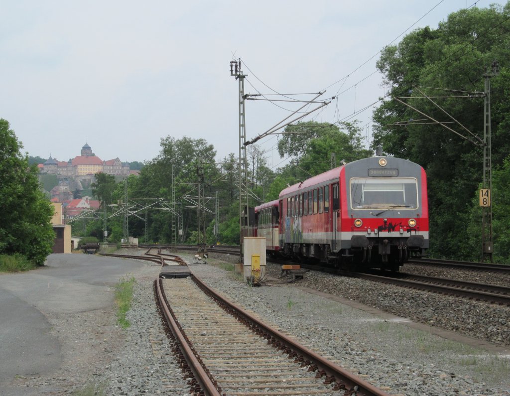 V 100 der EB 293 025-3 (ex DR BR 108) Erfurter Bahn GmbH Werklok 22, " Lisa 2 " auf Leerfahrt Richtung Steinbach, KBS 840 Lichtenfels - Saalfeld, fotografiert zwischen Förtschendorf und Steinbach am 30.05.2012 Frank Grohe
