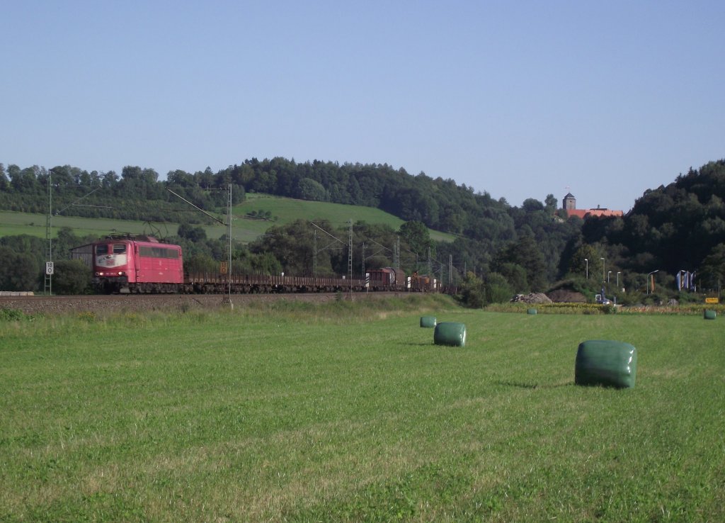 Seit langem mal wieder Fotografiert. 152 005 "CLAAS" ist am 05.Juli 2011 mit einem langen gemischten Güterzug in Gundelsdorf Richtung Saalfeld/S unterwegs. Mirko W.