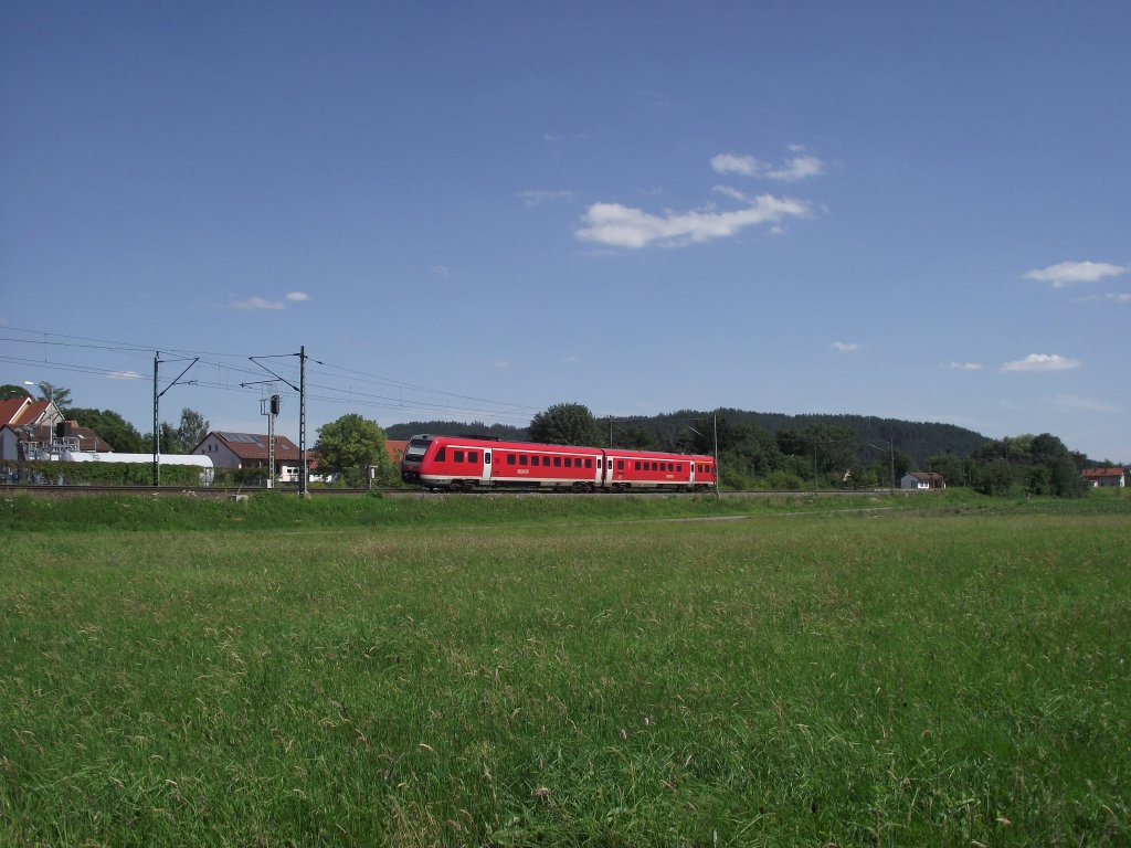Mit führendem Hallenser Halberstädter Steuerwagen erreicht eine RB nach Bamberg am 6. Juli 2011 in Kürze den Kronacher Bahnhof auf Gleis 3. Frankenwaldbahner