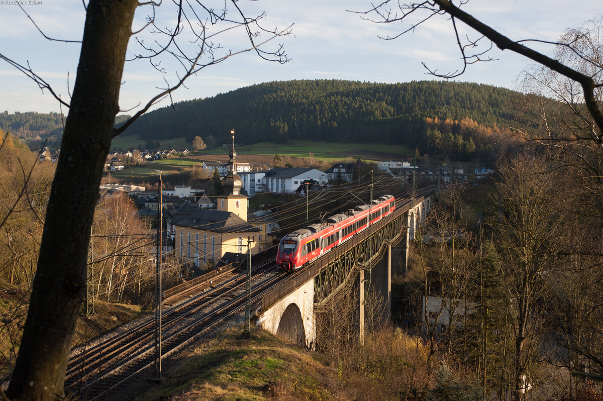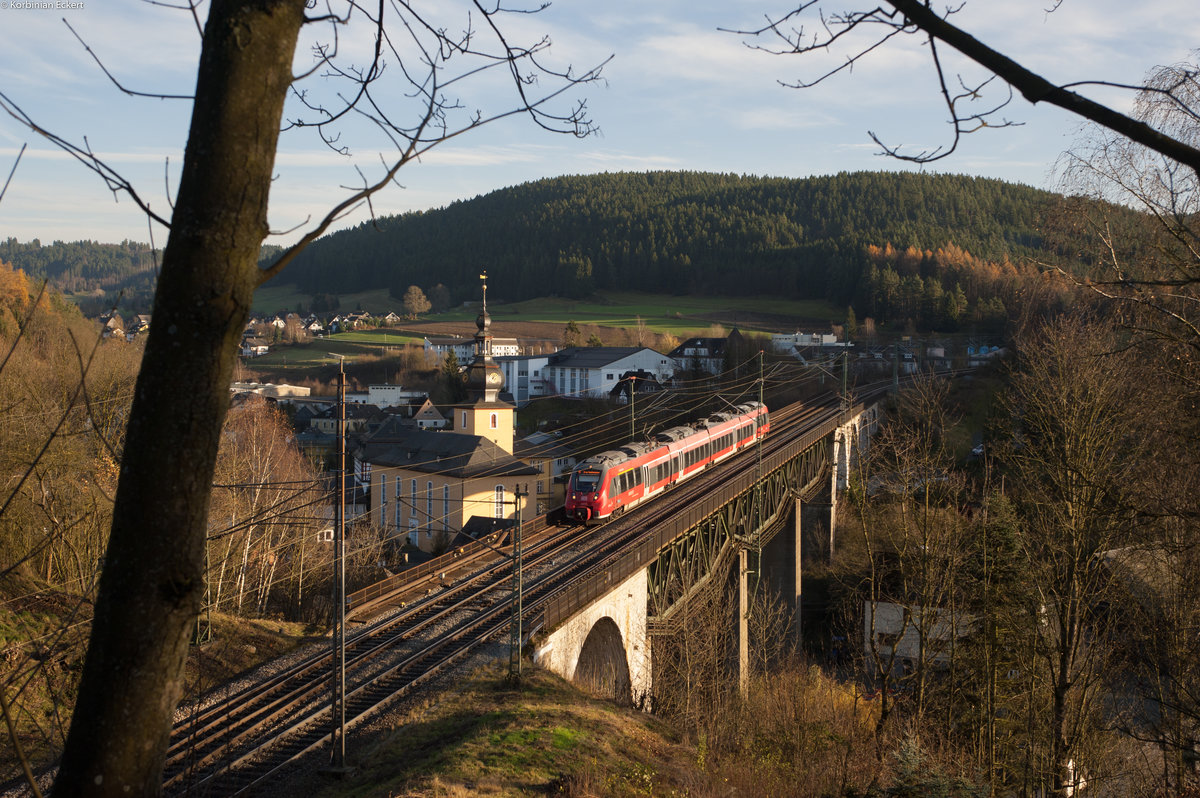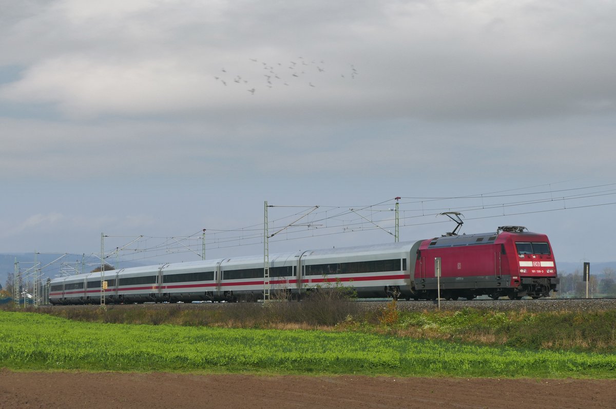 02.11.2017, ICE 1005 Berlin - München fährt kurz vor Kronach am km 18,0 in Richtung Lichtenfels. Lok 101 130 zieht die aus Metropolitan-Wagen bestehende Fuhre. Jürgen Krause