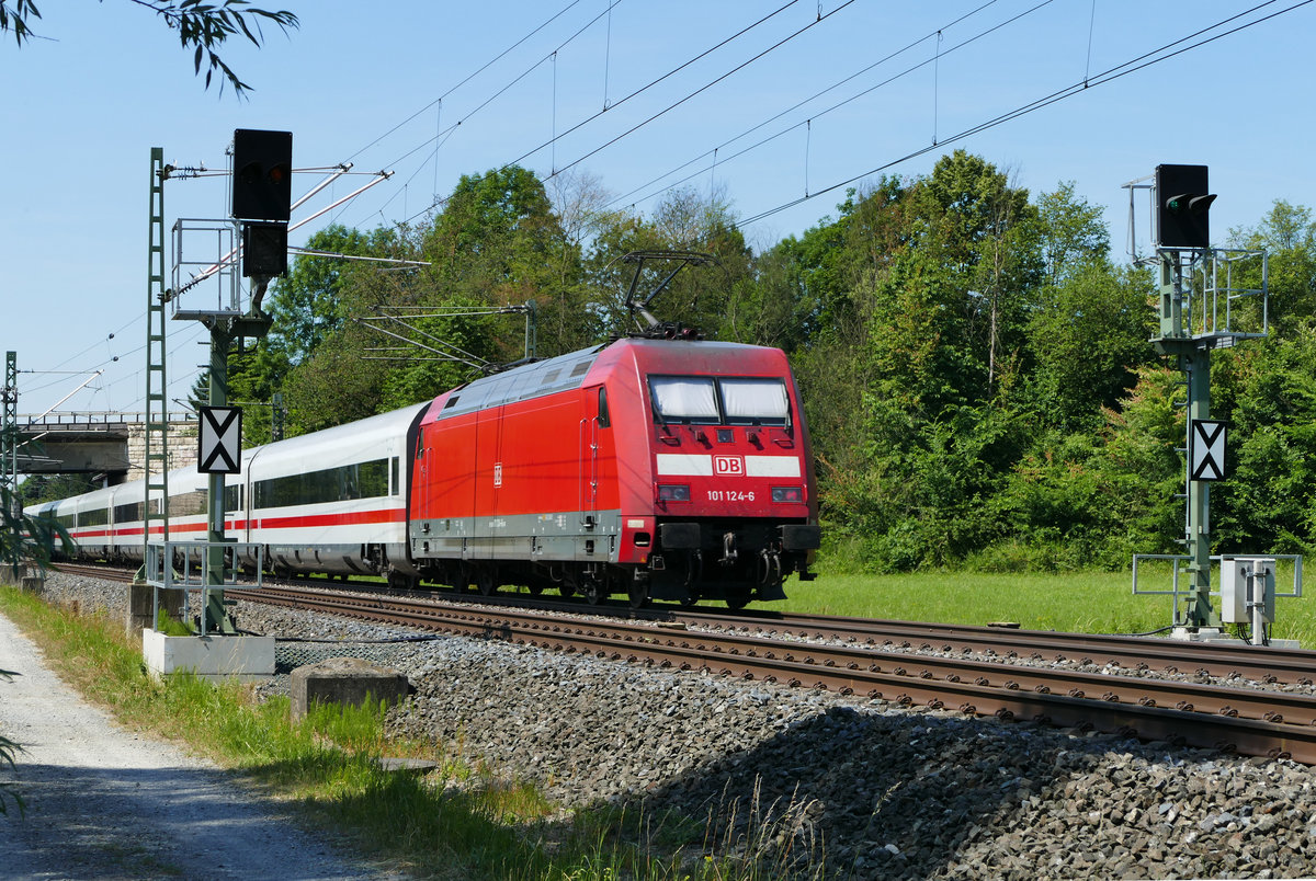 20.06.2017, ICE 1005 Berlin - München fährt bei Johannisthal in Richtung Saalfeld. Lok 101 124 befördert die ehemaligen Metropolitan-Wagen. Jürgen Krause