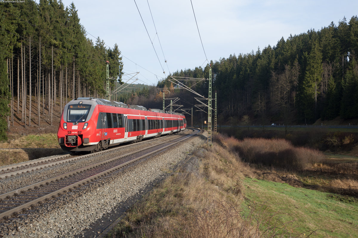 14.02.2019, IC 2063 von Karlsruhe Hbf nach Leipzig Hbf fährt in den Bahnhof Kronach ein. Von Pünktlichkeit hielt er meist nicht viel, es war ein Glücksspiel ihn in der mir vorgegebenen Zeit zu erwischen. Heute passte es aber wieder einmal. Jürgen Krause