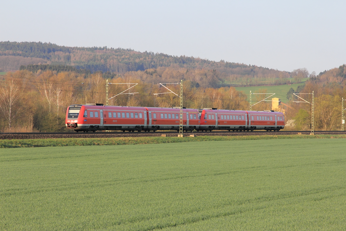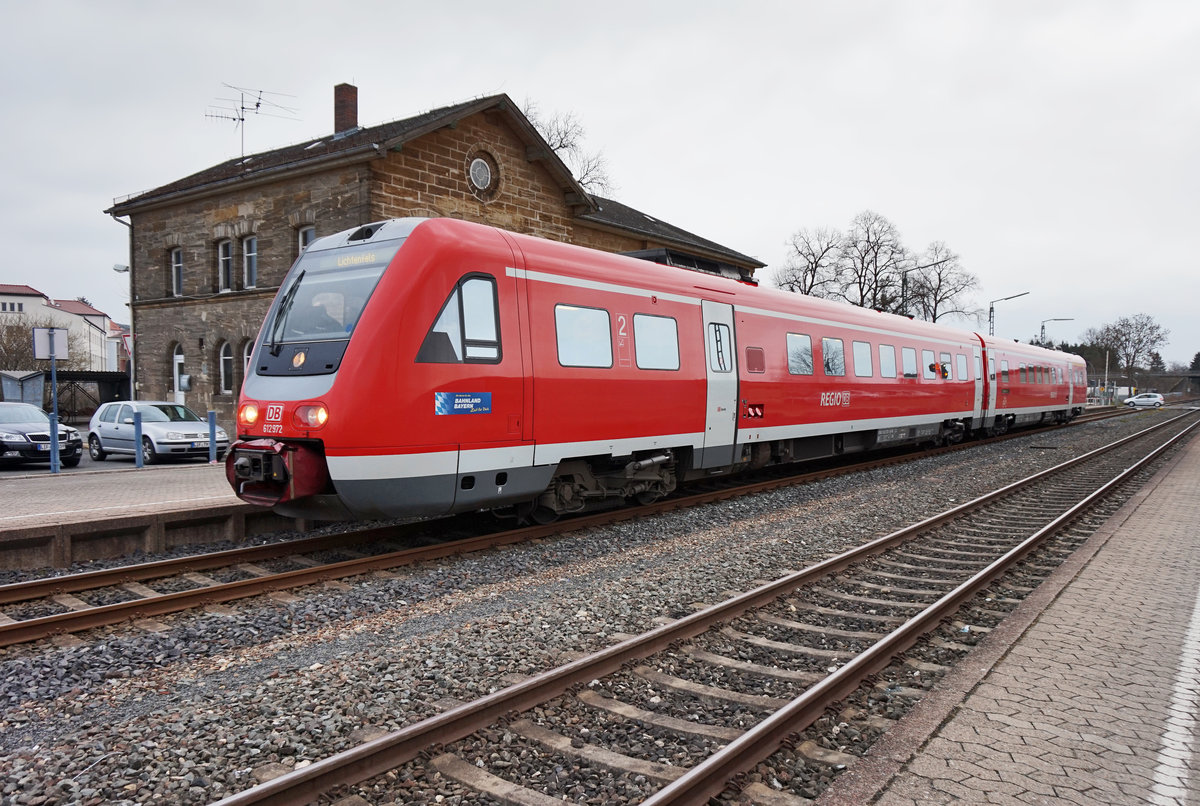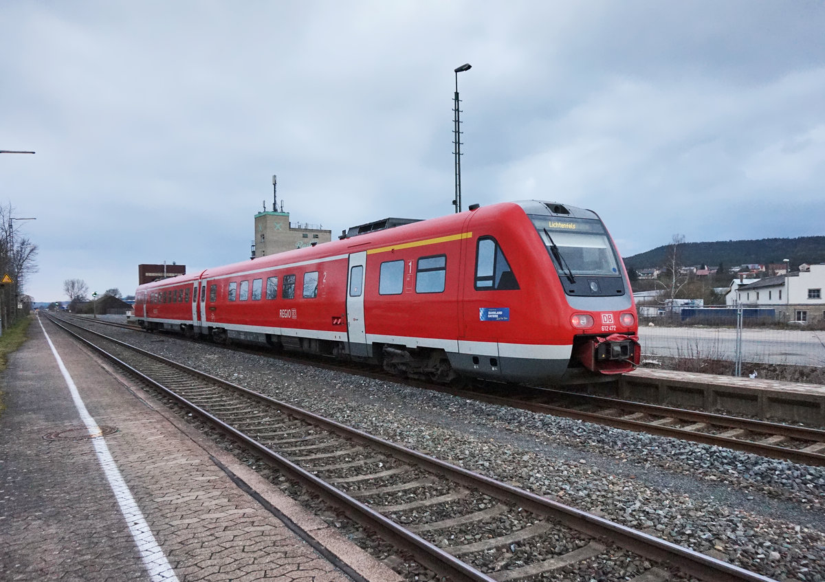 Nachschuss von 612 472 als RE 3756 (Nürnberg Hbf - Bayreuth Hbf - Neuenmarkt-Wirsberg - Lichtenfels), bei der Abfahrt in Burgkunstadt.