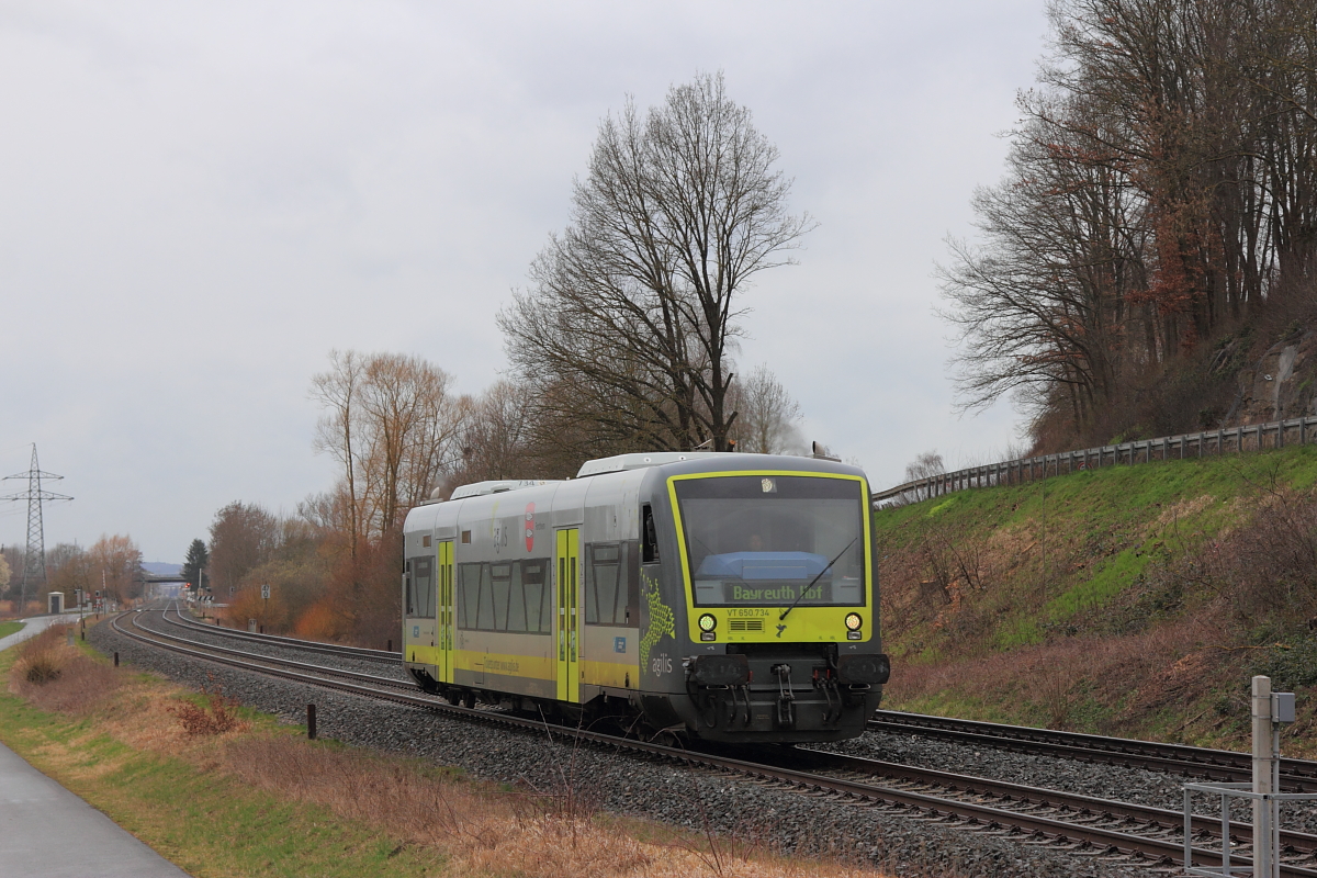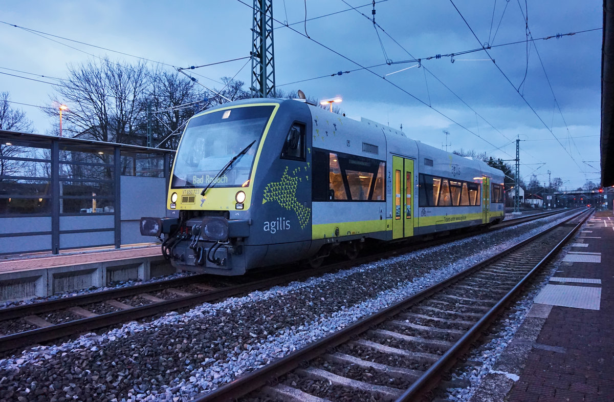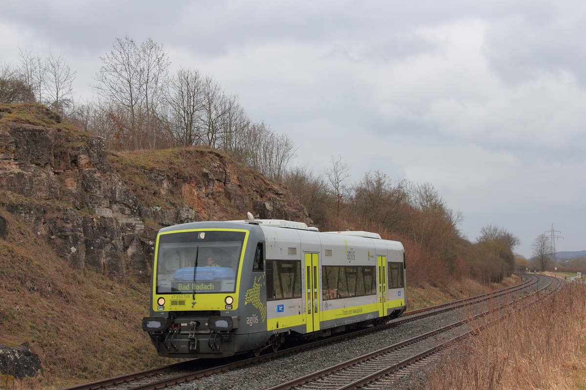 VT 650 723 von agilis als ag 84590 (Hof Hbf - Marktredwitz - Bayreuth Hbf - Bad Rodach), am 22.3.2016 beim Halt in Hochstadt-Marktzeuln. Hans-Peter Kurz