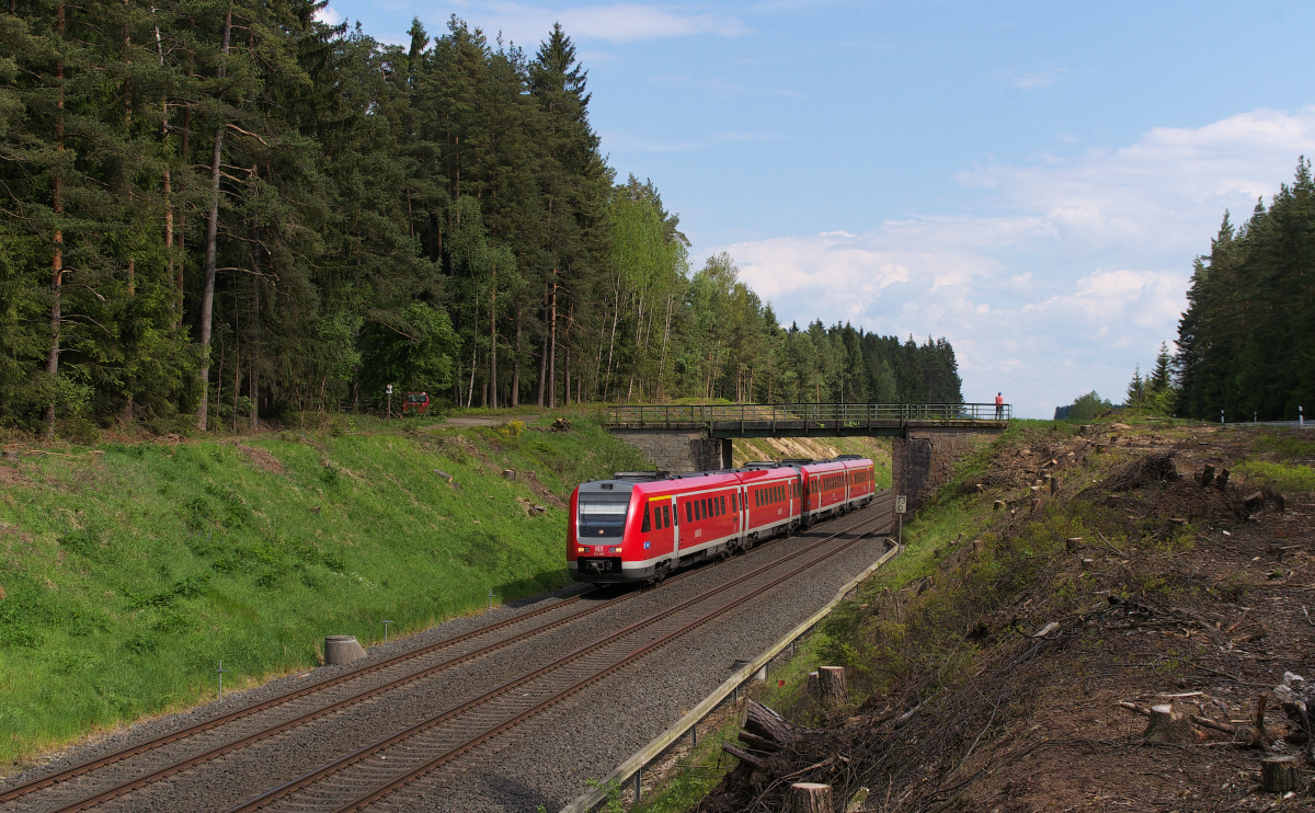 Es kesselt im Fichtelgebirge - Die Bahnstrecke 5050 Weiden - Oberkotzau steigt hinter Oberkotzau in Richtung Weiden aus dem Tal der Saale ins Fichtelgebirge auf.