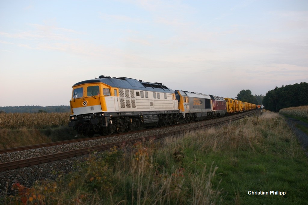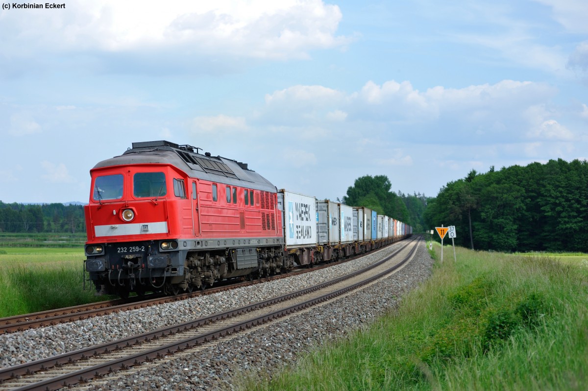 Der Holzzug von Parkstein-Hütten nach Torgau wurde am 03.08.2013 von 203 103 der MWB bespannt. Der Zug durchfährt hier gerade Schönfeld. Christian Philipp