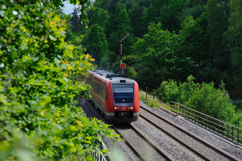 Und dazu noch ein besonderes: Mein 800stes Bild zeigt VT 20 der Vogtlandbahn bei der Fahrt Richtung Hof bei Oberteich. Aufnahmedatum: 20.08.2011 Korbinian Eckert
