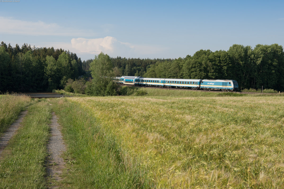 Parallelfahrt von ALX 84111 (München Hbf - Hof Hbf) mit 223 065 und 612 132 als RE 3865 (Bamberg/Nürnberg Hbf - Hof Hbf) bei Oberkotzau, 21.05.2018 Korbinian Eckert