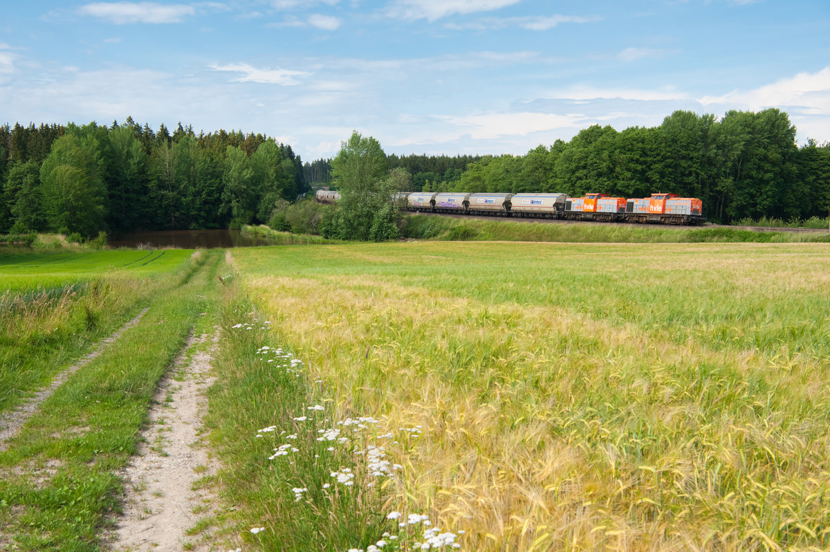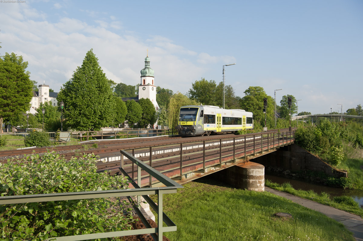 OPB 79728 passiert den kleinen Ort Lengenfeld. Damit verlässt er in wenigen Metern die Oberpfalz und fährt auf Marktredwitz dem Endbahnhof zu, 21.05.2018 Korbinian Eckert