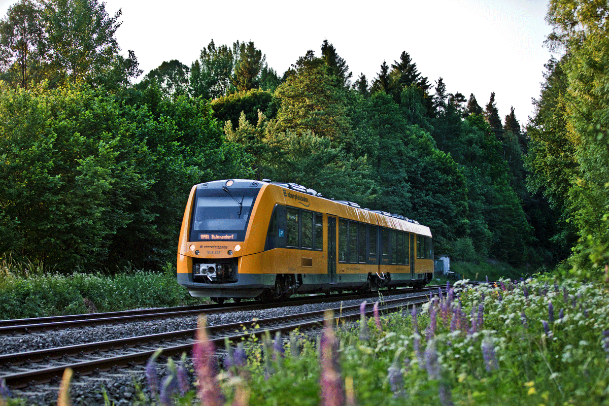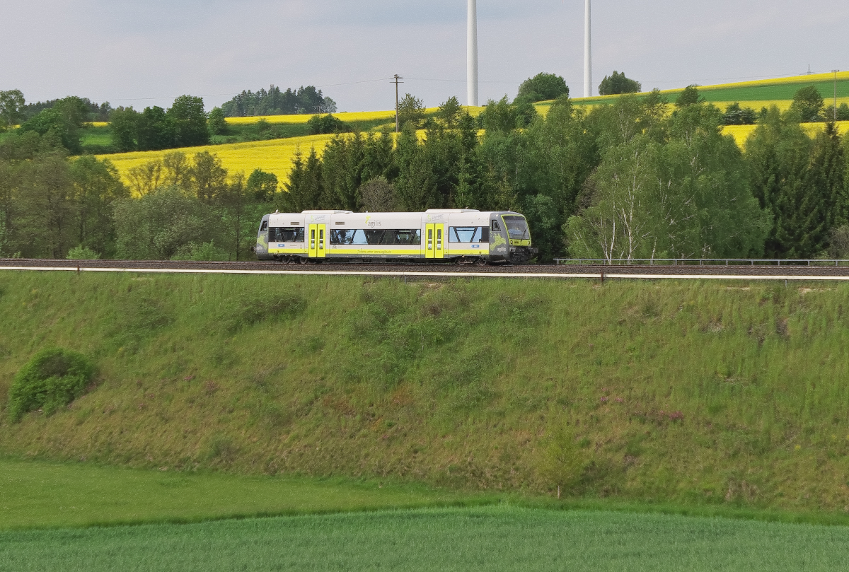 Agilis VT 650.737 ist auf der Relation Bad Steben - Hof - Marktredwitz unterwegs und hat das Tal der Saale verlassen und steurt dem Fichtelgebirge zu. Bahnstrecke 5050 Weiden - Oberkotzau bei Fattigau am 23.05.2017 Ivonne Pitzius