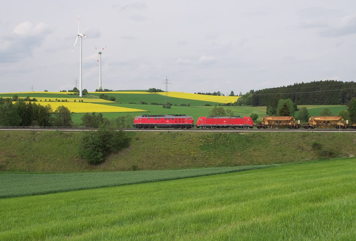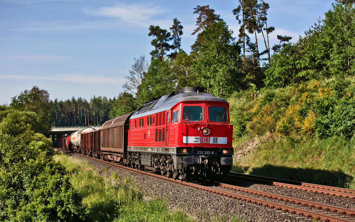 Ein schöner Tag für die Ivie, denn meine Lieblingslok, eine Ludmilla, fuhr mir vor die Linse. 233 662-6, mit einer 152er und einem Güterzug im Schlepp, brummt bei Fattigau hinunter ins Tal der Saale in Richtung Hof. Bahnstrecke 5050 Weiden - Oberkotzau am 23.05.2017 Ivonne Pitzius