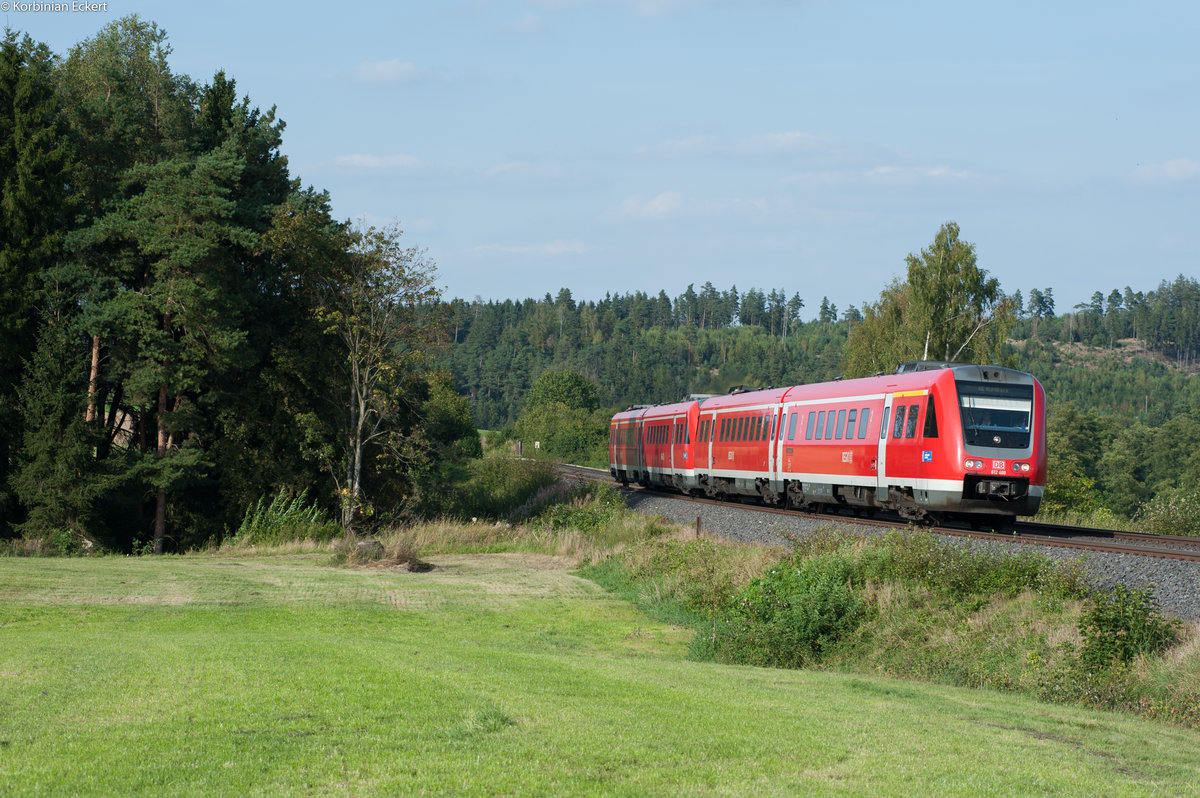 Der Oberpfalztriebzug 1648 203 fährt auf dem Weg nach Marktredwitz aus Regensbur Hbf kommend in Grünau vorüber,freundlicher Gruss zurück!!