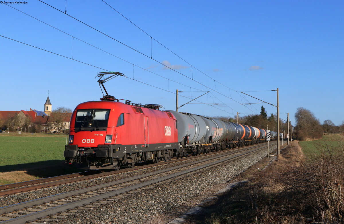 1116 103 mit dem DGS 47868 (Salzburg Gnigl Vbf - GRoßkorbetha) bei Rudolzhofen 23.2.22