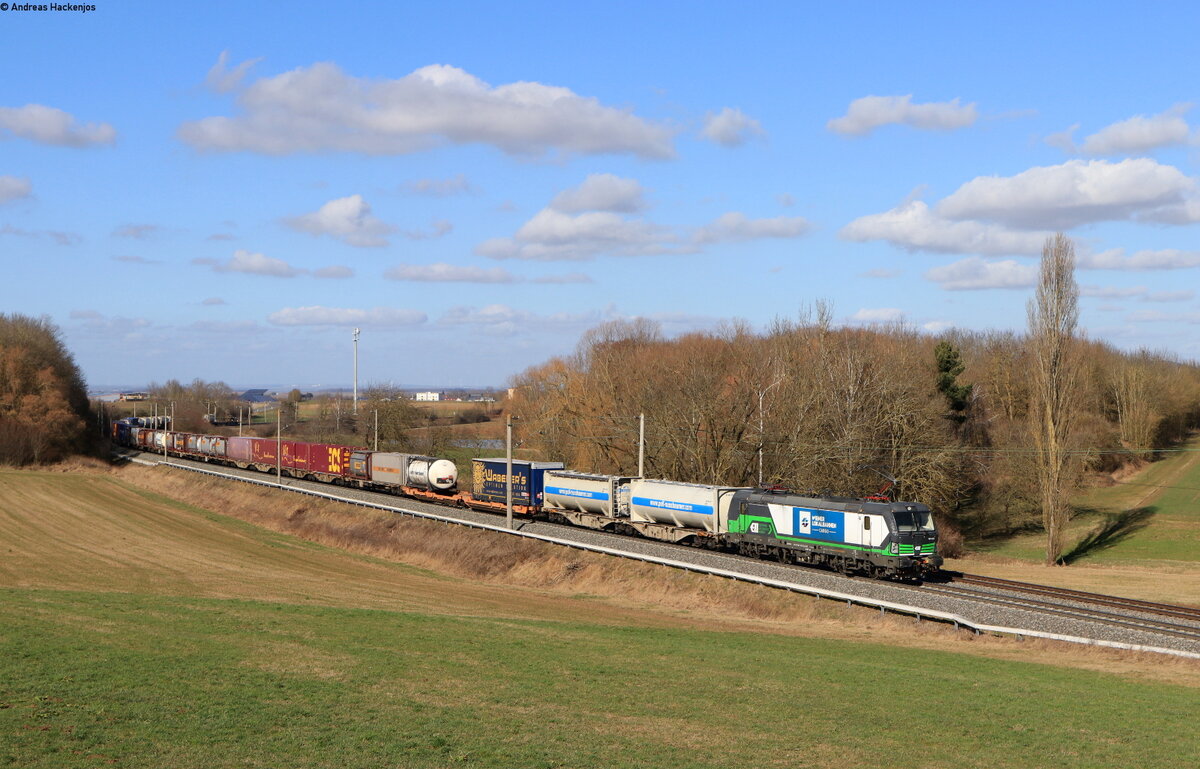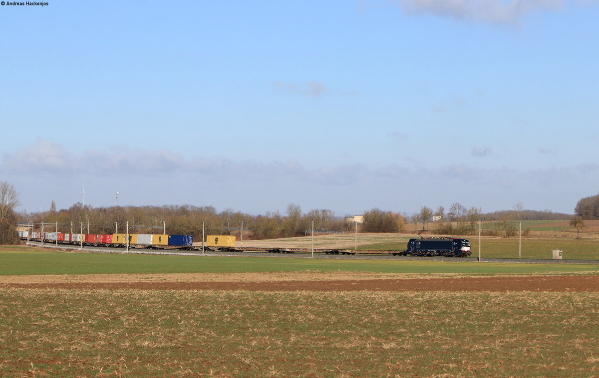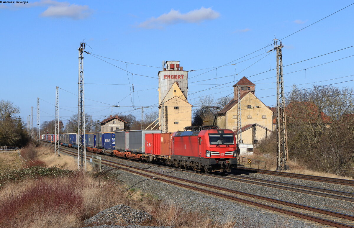 Re 482 021-3 mit dem DGS 91257 (Duisburg Ruhrort – Neustadt(Donau)) in Herrnberchtheim 23.2.22