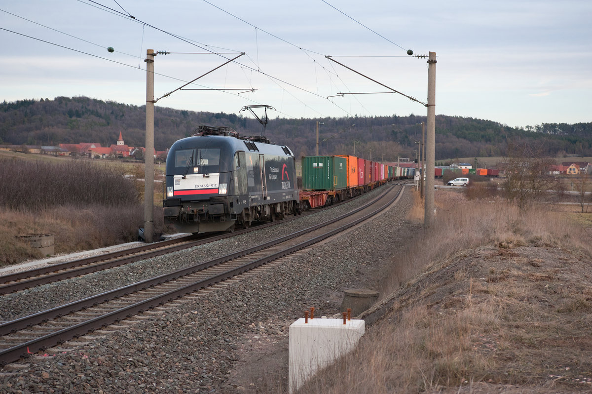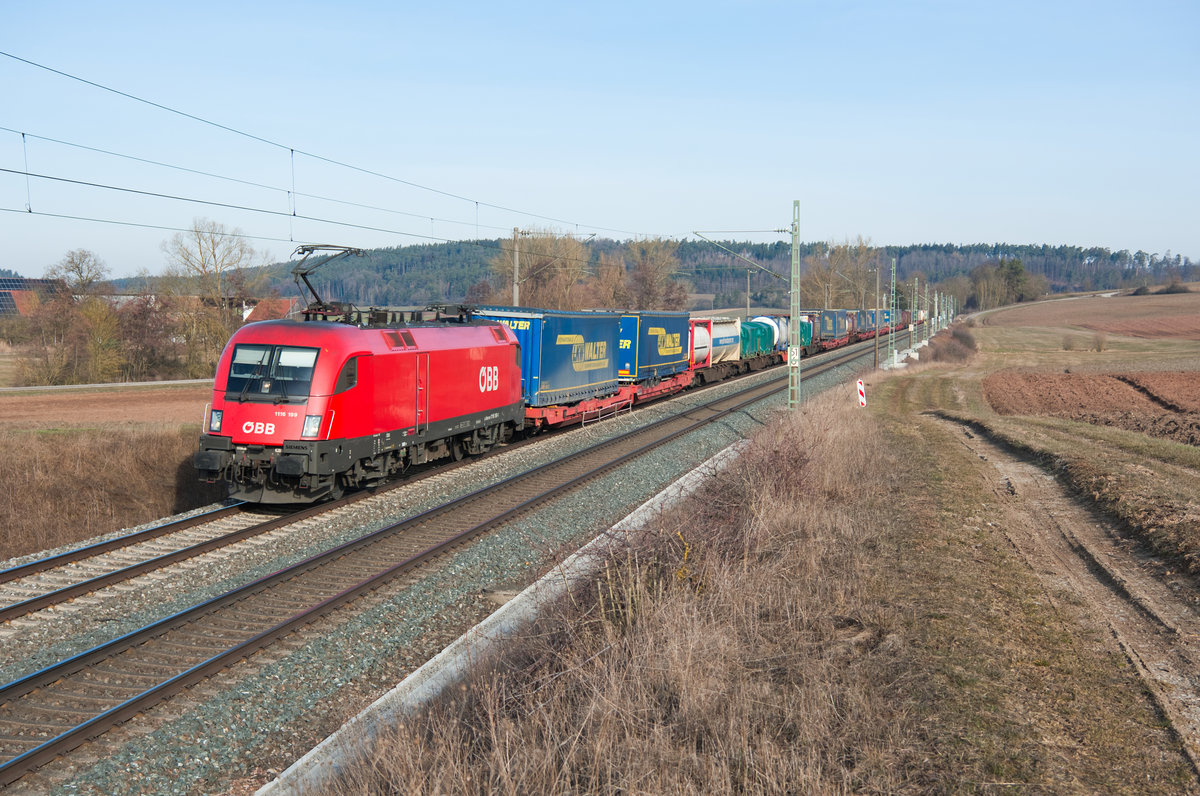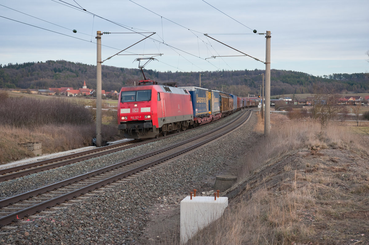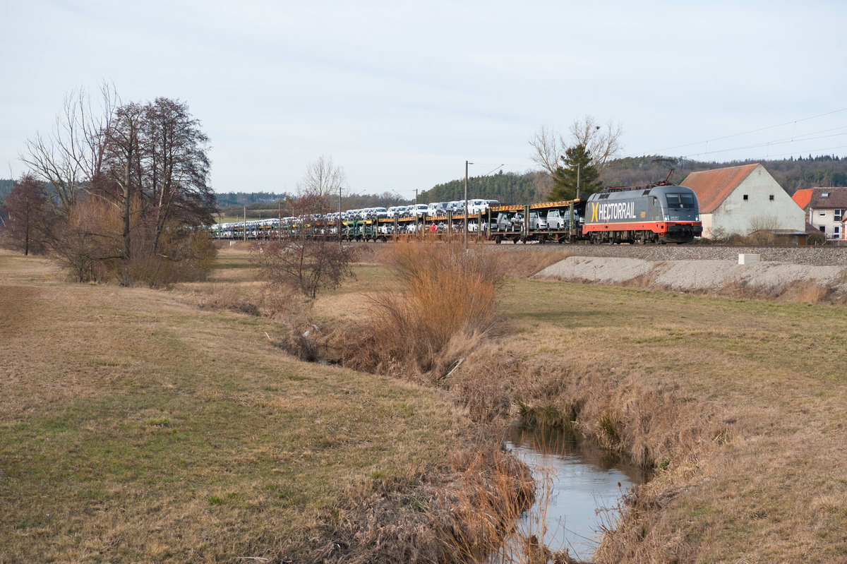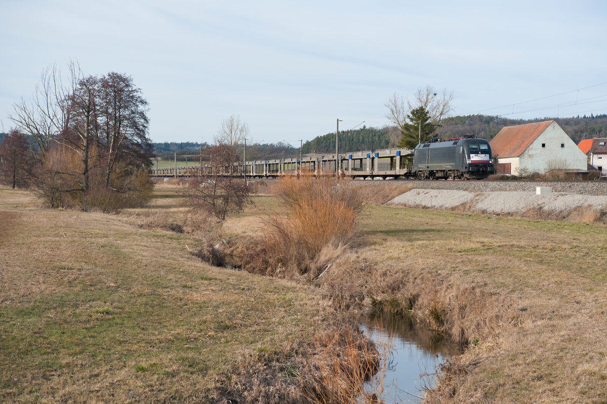 187 074 von Rhein Cargo mit einem Kesselwagenzug bei Mitteldachstetten Richtung Würzburg, 23.02.2019