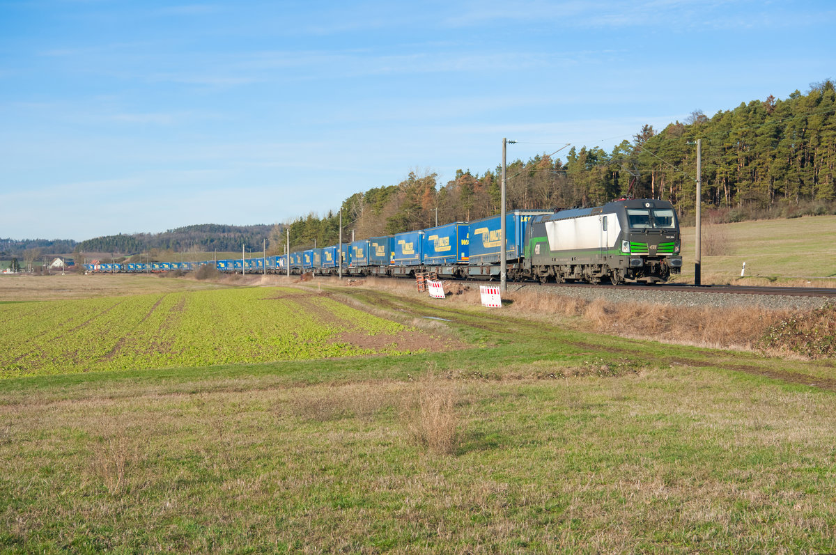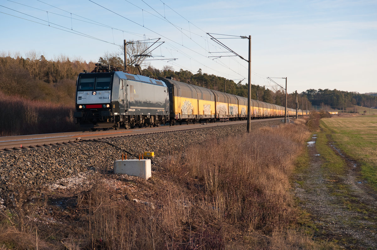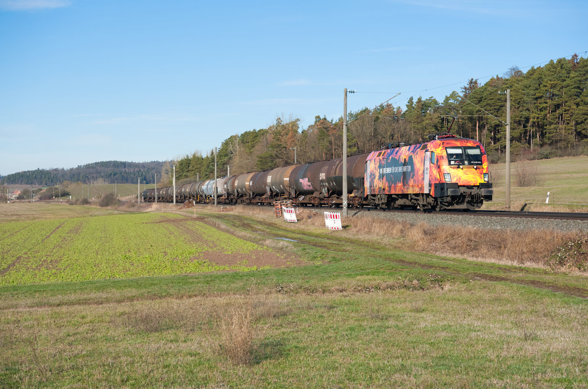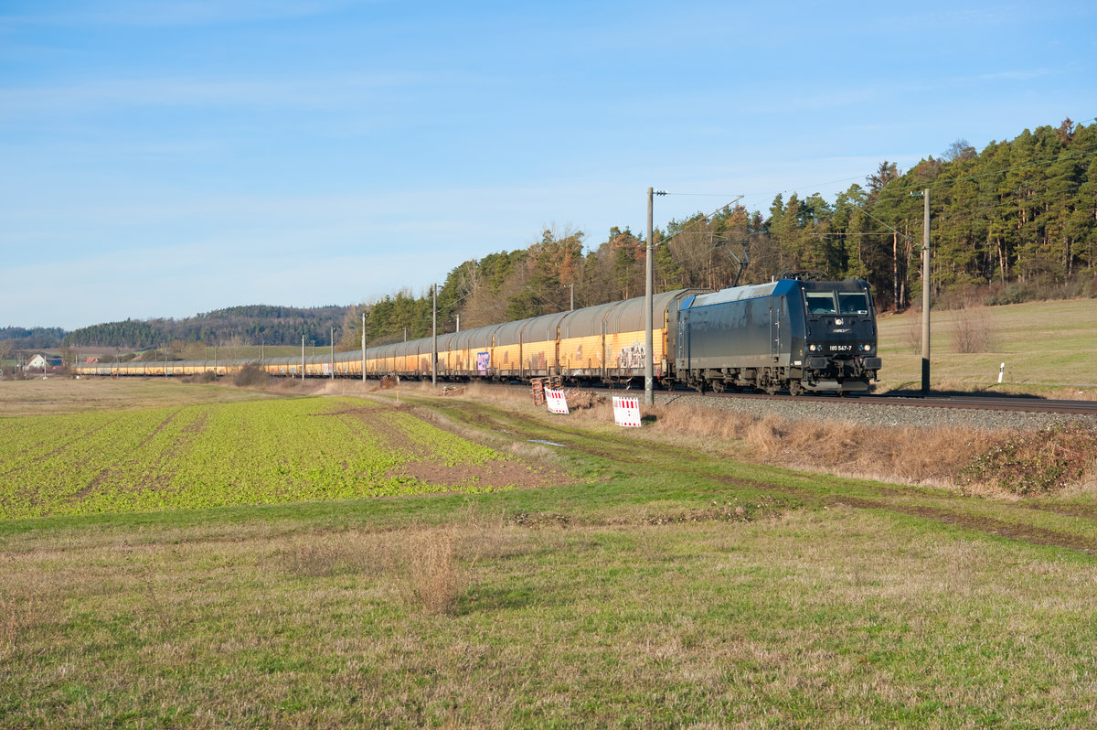 187 156 mit einem gemischten Güterzug bei Mitteldachstetten Richtung Ansbach, 19.01.2019