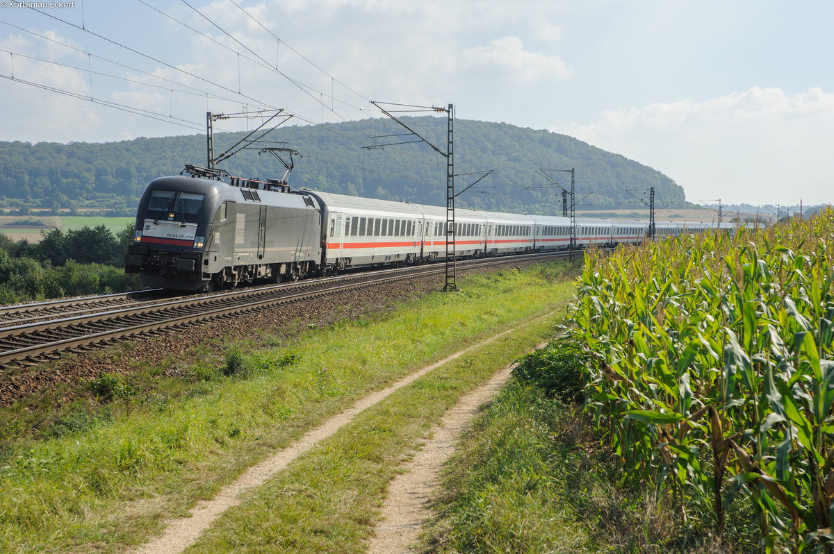 140 856-6 der Bayernbahn durchfährt mit dem 'Henkelzug' am Haken am 10. Mai 2017 den Überholbahnhof bei Herrnberchtheim auf der KBS 920 Richtung Ansbach. Ulrich Slovig