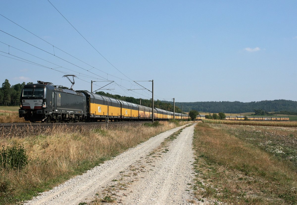 Panorama-Aufnahmen von ICEs im kurvenreichen Abschnitt zwischen Gollhofen und Uffenheim. Im Hintergrund der Kirchturm von Geckenheim. (Blick nach Osten am 11.8.04) Jörg Schäfer