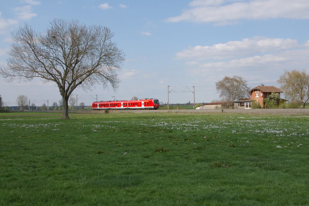 112 174 zieht ihre RB nach Würzburg durch den ehemaligen Haltepunkt Ehlheim. Jörg Schäfer stand am 20.5.09 auf den Überresten des Bahnsteigs nach Treuchtlingen, als er das Bild schoss. Der Bahnsteig Richtung Gunzenhausen ist hinter der Lok zu erahnen. Jörg Schäfer