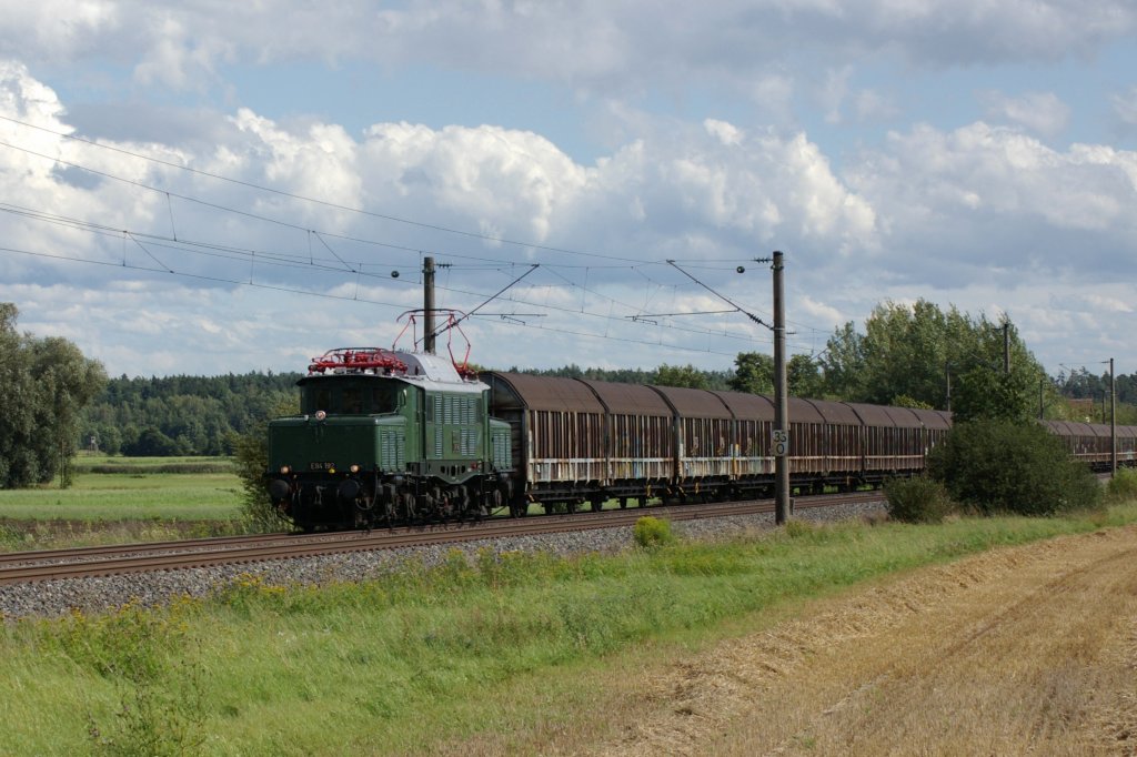 Ein Güterzug nach München fährt etwa 5 km vor Treuchtlingen an Bubenheim vorbei. Das Bild entstand am 20.5.09 vom Südhang des Altmühltals aus. Jörg Schäfer