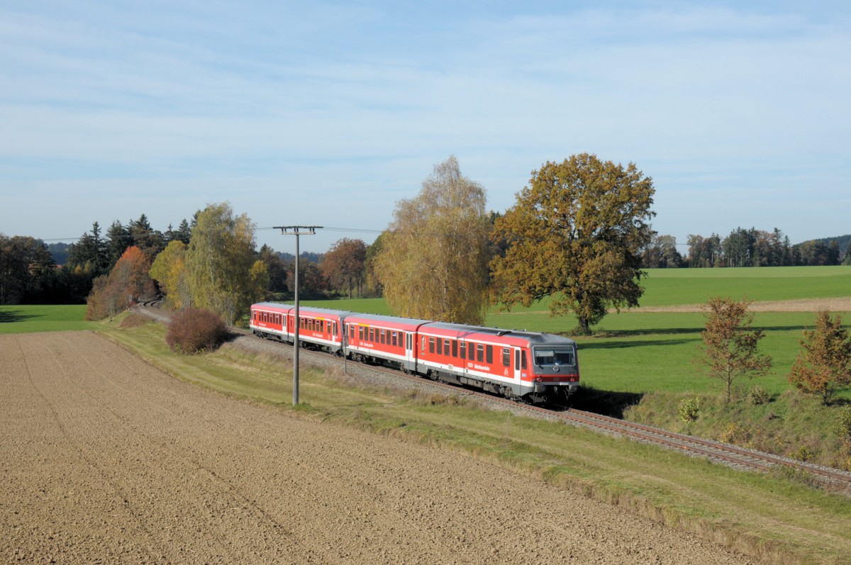 Nachschuss von 628 628 als RB 27087 (Landshut (Bay) Hbf - Mühldorf (Oberbay) Hbf - Freilassing) am 3.9.2014 bei der Einfahrt in den Bahnhof Freilassing. Hans-Peter Kurz