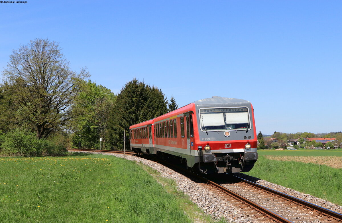 Im Hintergrund ist das Kloster Baumburg zu sehen. Dort hat der Zug kurz zuvor den Bahnhof Altenmark Alz verlassen. Gerd Hahn