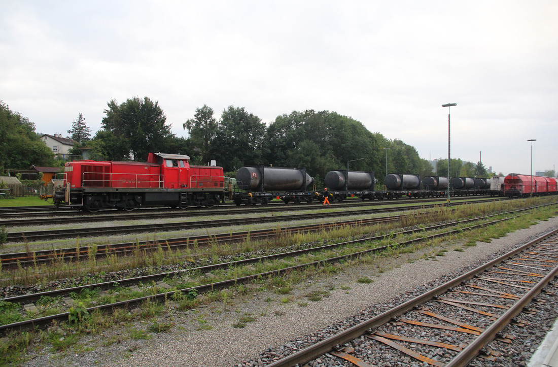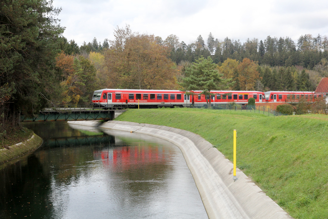Nach der Übergabe EZK 54123 von Traunreut nach Traunstein kann man üblicherweise die Uhr stellen. Kurz vor halb zwei wird stets der Bahnhof Hörpolding verlassen, nachdem die Kreuzung mit einem 628 abgewartet wurde. Am 29. September 2023 erwartete ich den an diesem Tage aus drei Wagen bestehenden Einzelwagenzug am Motivklassiker kurz hinter dem Einfahrtsignal des Bahnhofs Hörpolding. Zuglok war die bestens gepflegte 294 624. Sie arbeitete zum Aufnahmezeitpunkt im 55. Betriebsjahr und trug interessanterweise immer noch die RAILION-Beschriftung. Die Marke wurde bereits 2009 wieder aufgegeben. Christoph Schneider