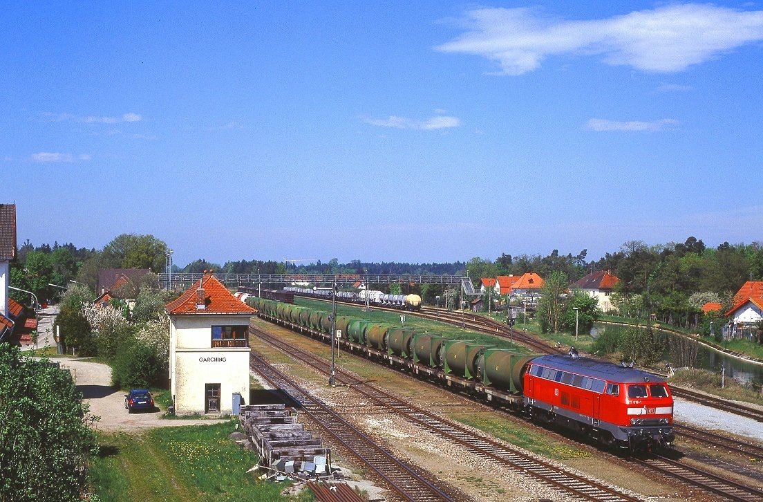 Bei der Einfahrt in den Bahnhof Garching (Alz) konnte ich den EK 54070 erneut aufnehmen. Der Bahnhof und die dazugehörige Signaltechnik wirken wie aus der Zeit gefallen. Man beachte die für diesen Tag "herausgeputzte" 232 569, die eine weiß hervorgehobene Regenrinne, sowie frische Farbe an Kupplung und im Lampentopf des oberen Spitzenlichtes erhalten hat (25. Mai 2019). Christoph Schneider