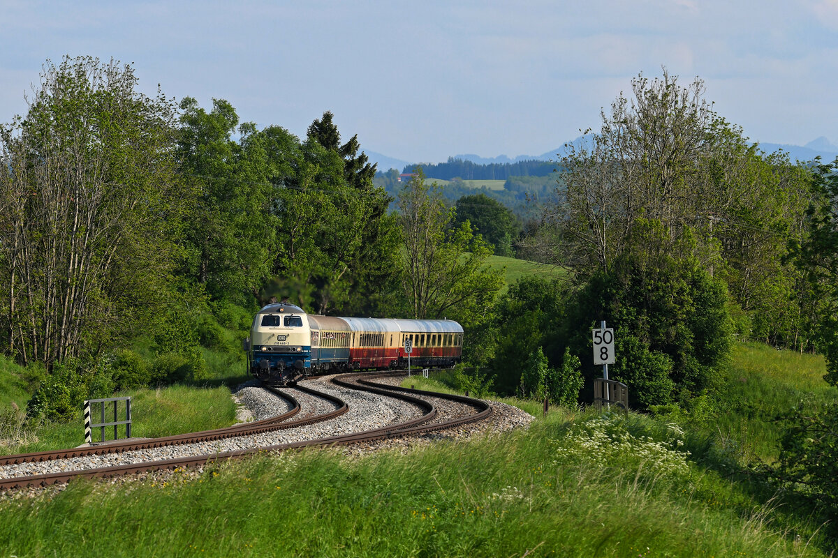 Ein allerletztes Mal Löwenzahnblüte im Allgäu mit dem IC 2085. Am 02. Mai 2025 diente mir bei Riedles eine noch nicht ganz verblühte Wiese mit Löwenzahn als Motiv für den IC 2085 "Nebelhorn" von Hamburg Altona nach Oberstdorf. Im Oktober 2025 wurde dieses hauptsächlich an Touristen gerichtete Angebot von DB Fernverkehr endgültig eingestellt. Am Tag der Aufnahme war die ozeanblau-beige 218 446 für diesen Dienst eingeteilt. Jahrzehnte lang war der planmäßige Einsatz der klassischen Bundesbahnloks ein gewohntes Bild in der Region. Nun heißt es Abschied nehmen - übrigens auch vom Fernverkehr mit Reisezugwagen. Christoph Schneider