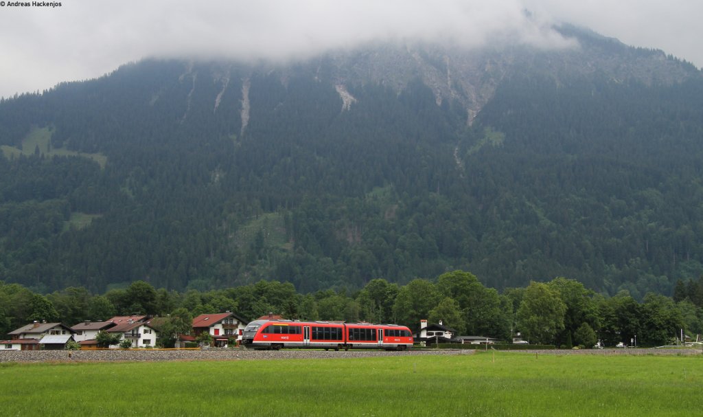 Während die Bahnstrecke zwischen Immenstadt (Allgäu) und Lindau wegen Bauarbeiten gesperrt war, verkehrten die ALEX-Züge bis Oberstdorf mit 6 Wagen und größtenteils auch mit zwei Loks im Sandwich. Aufgrund dessen wagte ich am 19. August 2012 von Altstädten aus mal einen Nachschuss auf einen in Richtung München fahrenden ALX mit seiner 223 am Zugschluss. Die Kulisse hierfür bot die Stadt Sonthofen. Pascal Ost