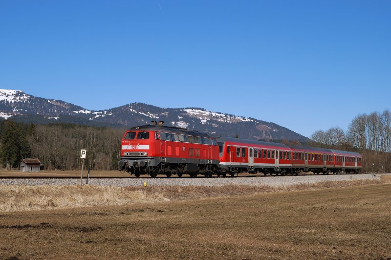 Eigentlich habe ich am 14.06.09 um 06:05 Uhr bei strahlendem Sonnenaufgang einen guten Standort für den 218er Lokzug mit 8 Loks für´s Stillstandmanagement Hagen gesucht. Da mußte ich einfach abdrücken, als die noch aktive 218 488-5 mit ihrem RE bei Fellheim von Memmingen kommend nach Ulm unterwegs war. Raphael Krammer