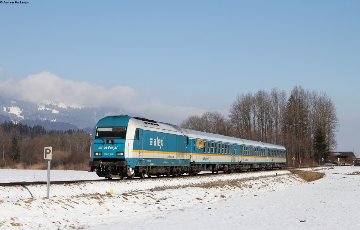 223 066 mit dem ALX84152 (München Hbf-Oberstdorf) bei Altstädten 9.3.16