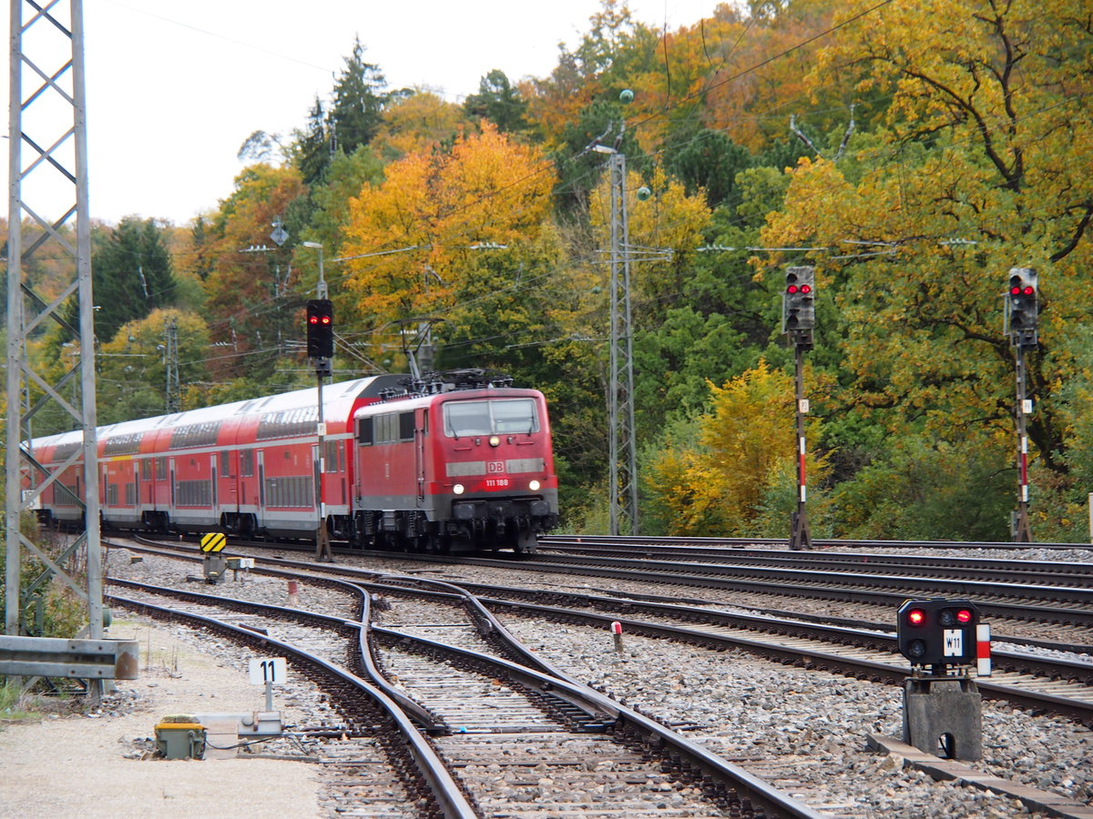 111 188 als RB 59156 von München nach Nürnberg. Am 07.10.17 bei der Einfahrt Eichstätt Bahnhof.