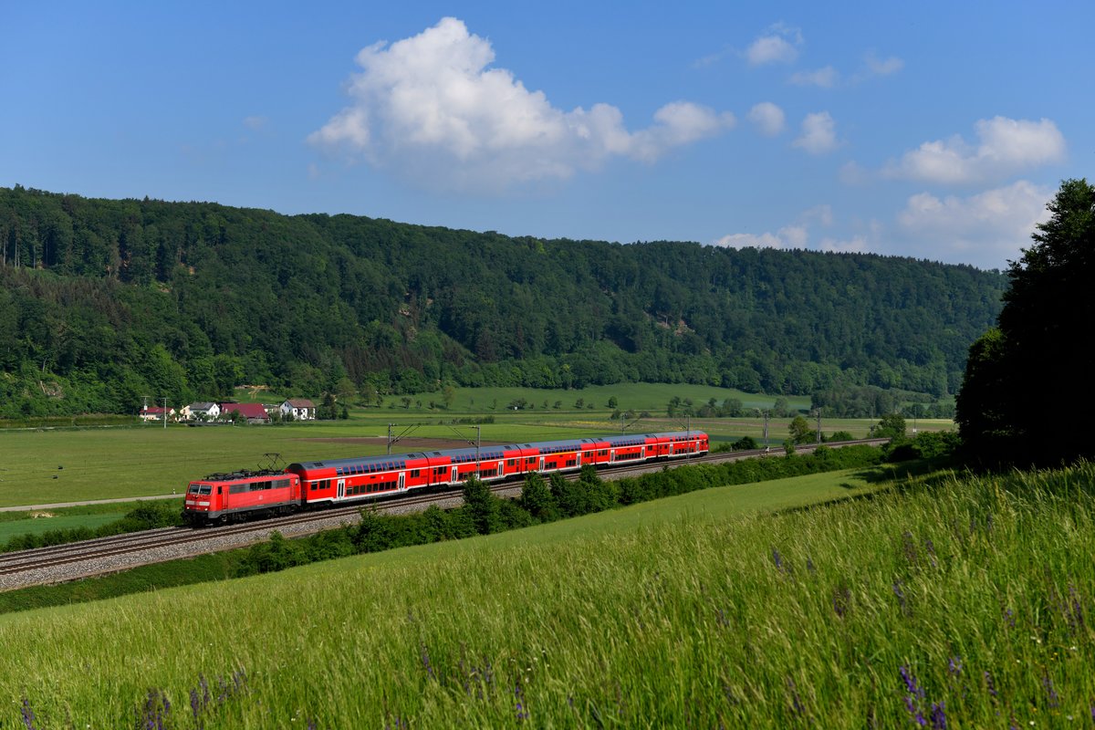 Am 11. Mai 2018 konnten noch zahlreiche Leistungen mit Loks der Baureihe 111 im Altmühltal beobachtet werden. Inzwischen ist der Nahverkehr zwischen Ingolstadt und Treuchtlingen fest in der Hand der neuen Twindexx-Triebwagen. Bei Breitenfurt konnte ich an diesem Tage 111 039 mit ihrer RB 59148 aufnehmen.