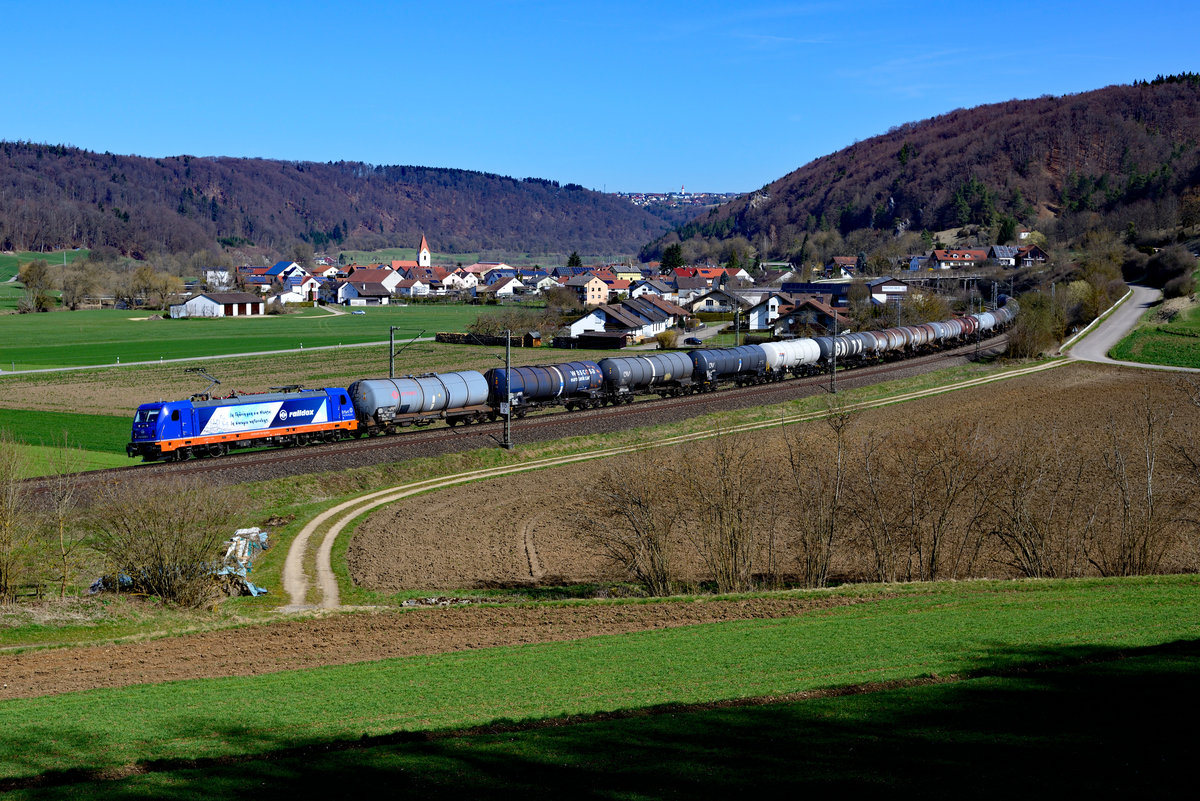 Die zum Aufnahmezeitpunkt erst wenige Wochen alte 187 318 des Erfurter Unternehmens Raildox konnte ich am 07. April 2018 bei Breitenfurt im Altmühtal aufnehmen. Diese brachte einen Kesselwagenzug von Vohburg nach Lutherstadt Wittenberge.