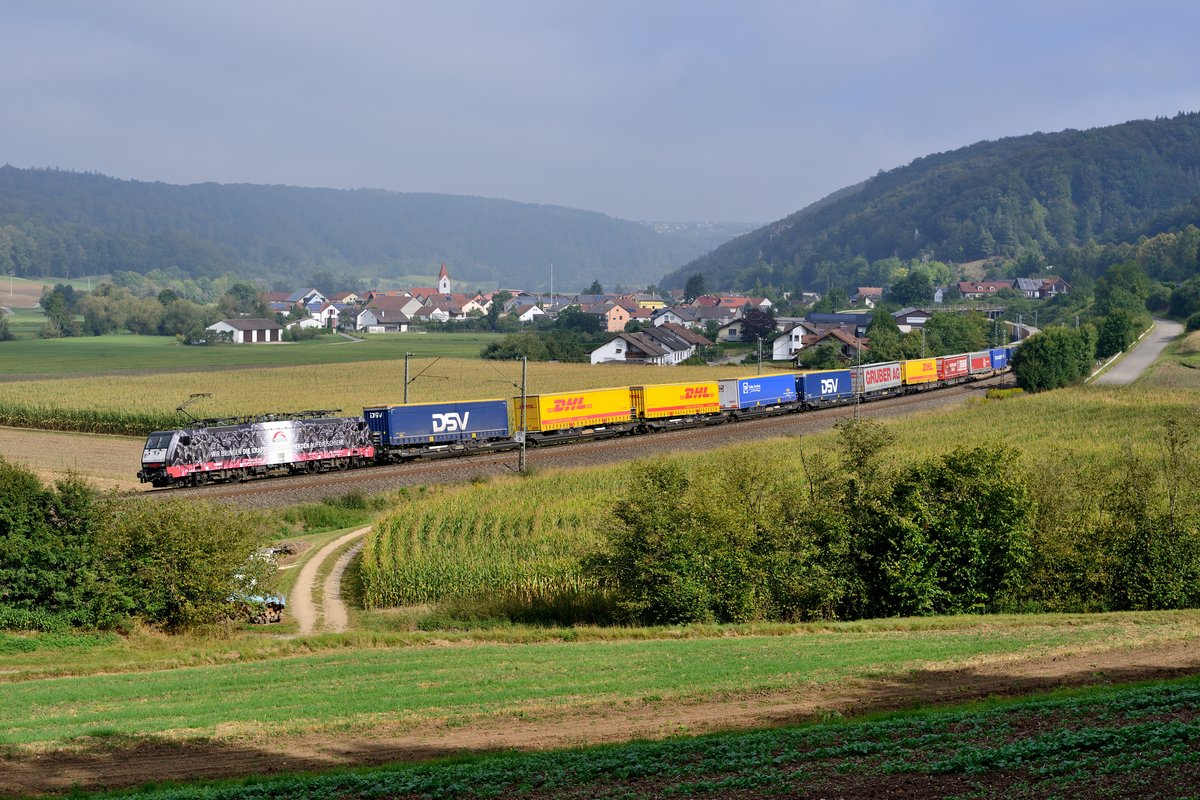 Ab September gestaltet sich das Fotografieren im Altmühltal oft recht spannend. Gerne hält sich dichter Nebel bis in die Mittagsstunden. So auch am 08. September 2016, als sich die Schwaden erst bei Vorbeifahrt von 189 997 mit ihrem DGS 43140 von Verona Q. E. nach Lübeck Skandinavienkai etwas lichteten. Bei Breitenfurt legte sich die neue Werbelok von TXLogistik mit ihrem gut ausgelasteten Zug des kombinierten Ladungsverkehrs in die Kurve. Christoph Schneider