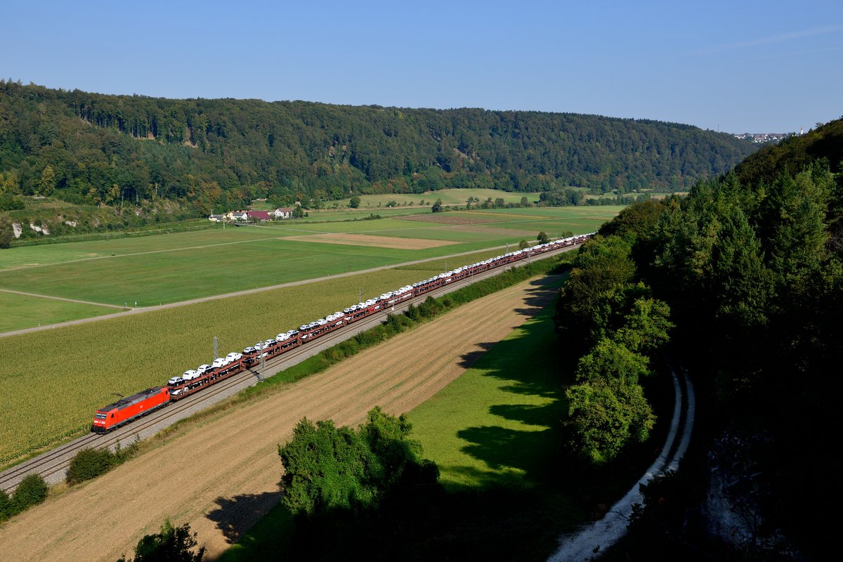 Der GA 52860 von Ingolstadt Hbf nach Osnabrück Ruf wird gerne mit den altehrwürdigen Sechsachsern der Baureihe 151 bespannt. So auch am 08. September 2016, als 151 075 bei Breitenfurt im Altmühltal meinen Standpunkt mit einer Ladung fabrikneuer Audis passierte.