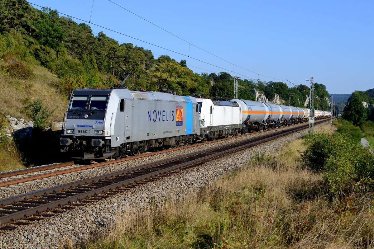 Am 12. September 2016 konnte bei Hagenacker auch der DGS 89150 von Ingolstadt Hbf nach Köln Eifeltor fotografiert werden. Geführt wurde der Zug von der Railpool 185 697, welche zwar an den Seiten das Firmenlogo des US-amerikanischen Aluminium-Herstellers Novelis trägt, die aber seit geraumer Zeit von der Bräunert Eisenbahnverkehr GmbH im Mineralölverkehr eingesetzt wird. Neben einem Ganzzug bestehend aus Gaskesselwagen hat "Jolina" auch einen als Wagenlok mitlaufenden Vectron im Schlepp. Christoph Schneider