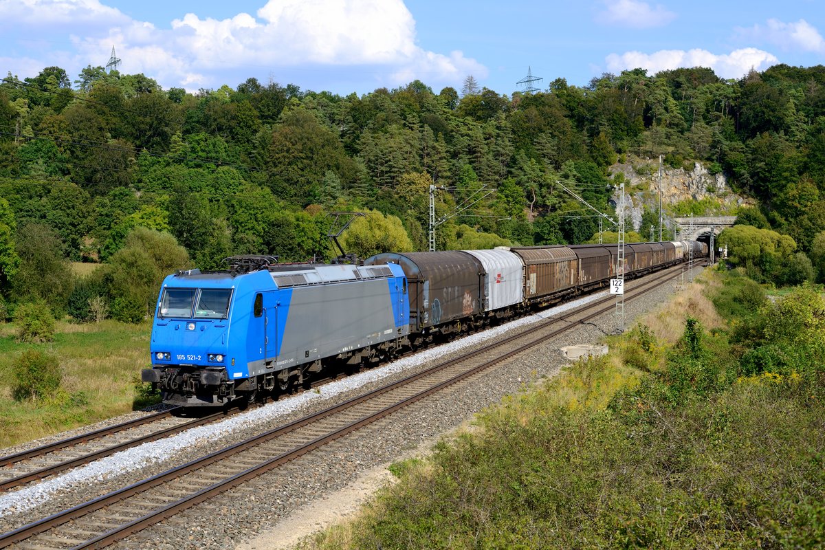 Der DGS 42546 aus Linz Voestalpine nach Antwerpen Waaslandhaven in Belgien wurde am 10. September 2016 über Ingolstadt umgeleitet. Es führte die 185 521, die seit kurzem für das Unternehmen Railtraxx fährt. Der gemischte Güterzug konnte beim Verlassen des Esslingen Tunnels abgelichtet werden. Christoph Schneider