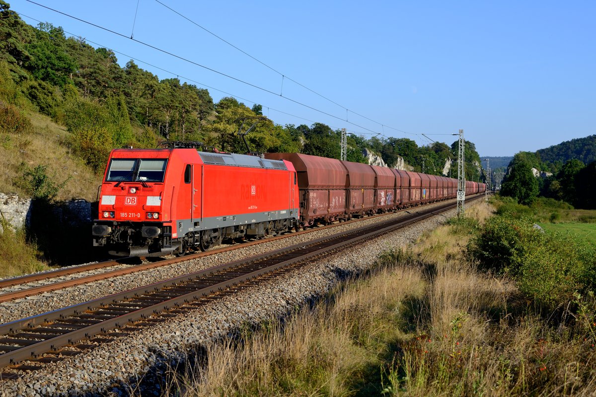 Der GM 44999 von Linz Stahlwerke nach Neuss Gbf wurde am 12. September 2016 ebenfalls über Ingolstadt umgeleitet. Bei Hagenacker im Altmühltal konnte ich den von 185 211 geführten Ganzzug ablichten. Christoph Schneider
