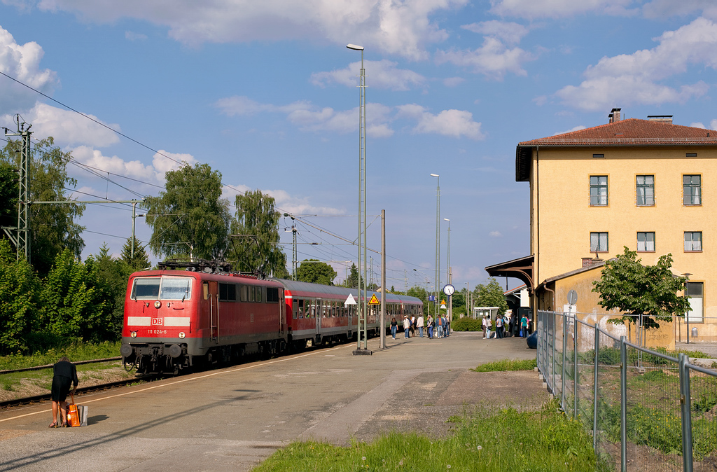 DB 111 021-2 vor RB 32382 Regensburg - Ingolstadt, KBS 993 Regensburg - Ulm, fotografiert auf der Donaubrücke bei Bad Abbach am 04.06.2010 Frank Grohe