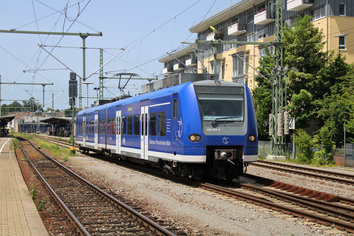 BOB 426 043-6 verlässt am 18.06.2022 Friedrichshafen Stadt zur Fahrt nach Friedrichshafen Hafen.