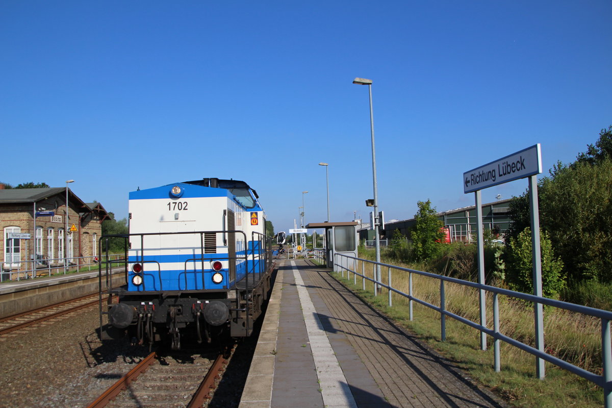 203 130-0 DUD der D&D als TfZf 98012 AN AMR AL WK (Neumünster Kiel-Meimersdorf Lübeck Bad Kleinen) am 09.8.17 im Bahnhof Schönberg (Meckl) beim Warten auf ein Gegenzug. CJM-TRAINSPOTTING