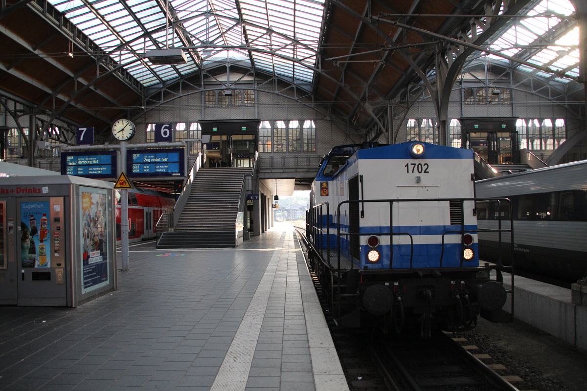 203 130-0 DUD der D&D als TfZf 98012 AN AMR AL WK (Neumünster Kiel-Meimersdorf Lübeck Bad Kleinen) am 09.8.17 in Lübeck Hbf beim Warten auf freie Trasse. CJM-TRAINSPOTTING