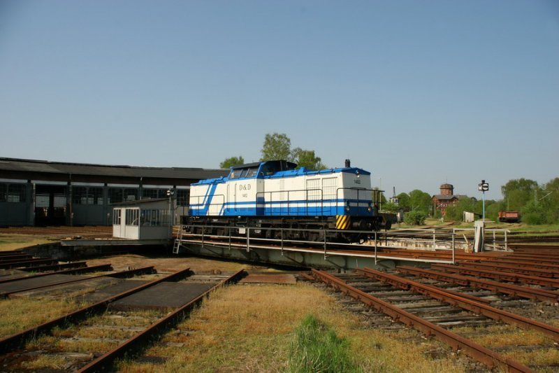 21.06.2006 D & D 1404 (alte 202 735-7) Bj. 1974, 12.06.2006 modernisiert steht im ehem. Bw Hagenow Land an der Drehscheibe
