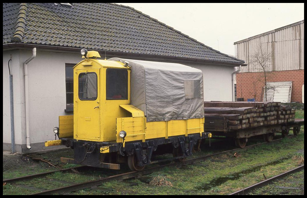Am 14.4.1992 hatte sich ASF 18851-86 LEW Henningsdorf bereits in den Westen Deutschlands "verirrt". Das Verschubgerät stand in Mackenstedt an der Strecke der Delmenhorst Harpstedter Eisenbahn. Gerd Hahn