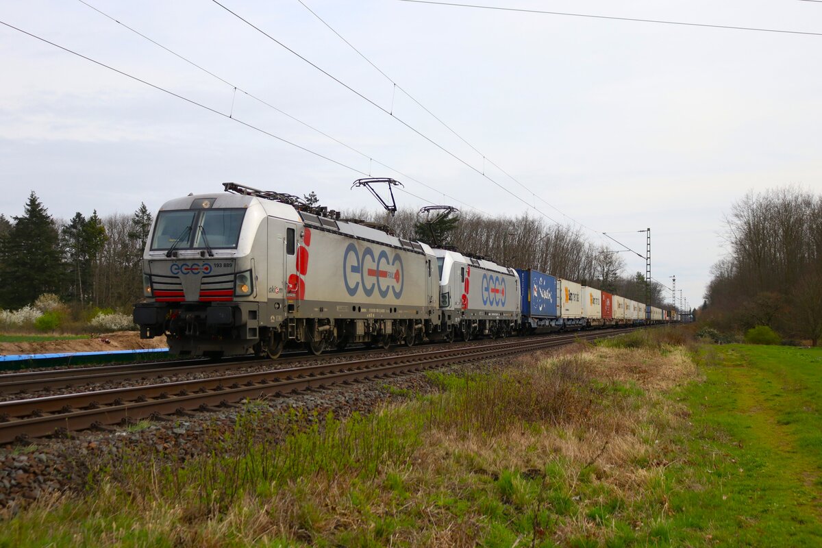 Mitzieher auf 193 962 ELL/Eccorail, die mit einem ekol KLV-Zug bei Lehrberg Richtung Würzburg unterwegs war, 23.09.2021