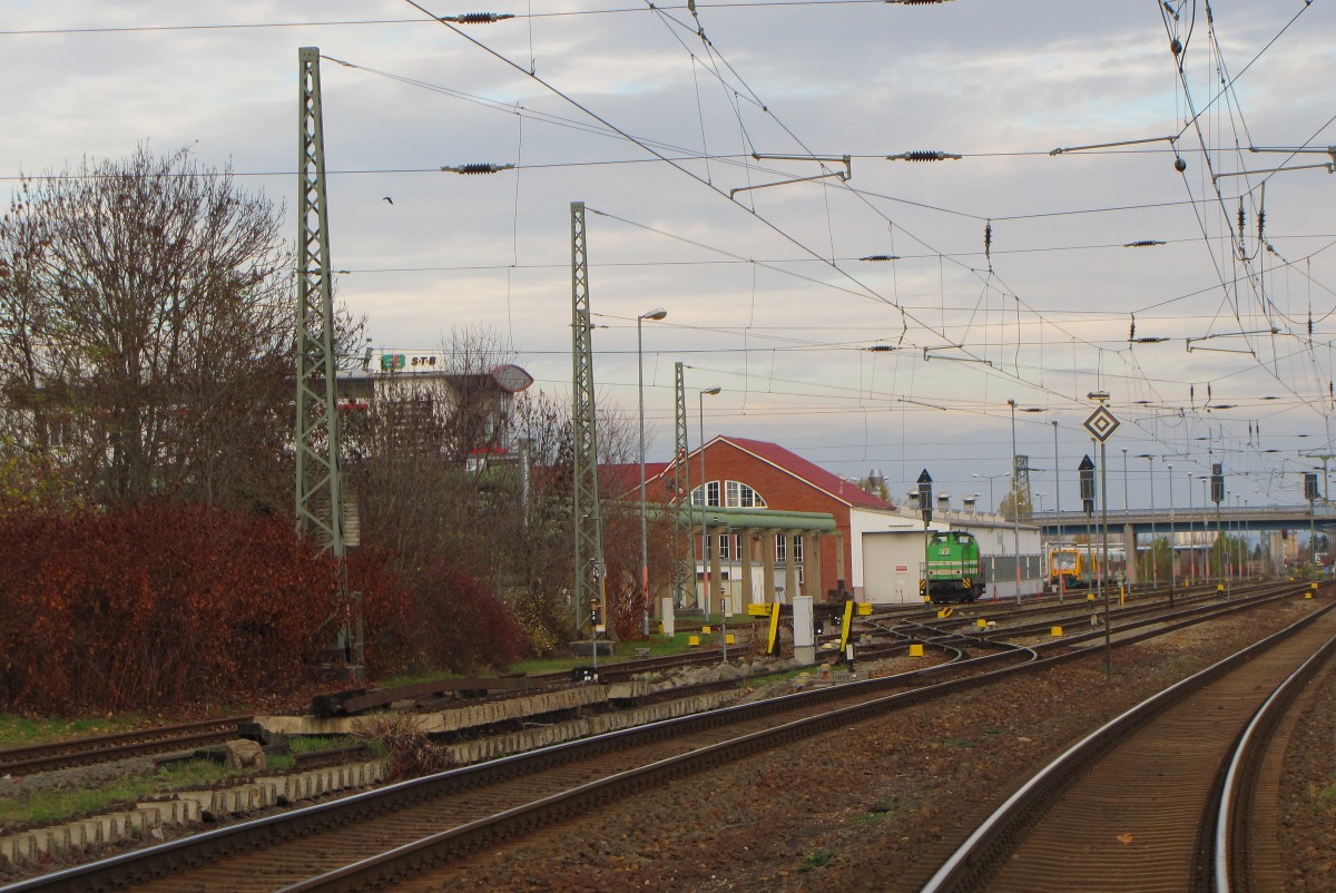 Das Bw der Erfurter Bahn am 11.11.2015 in Erfurt Ost. Von einem Bahnübergang aus fotografiert.