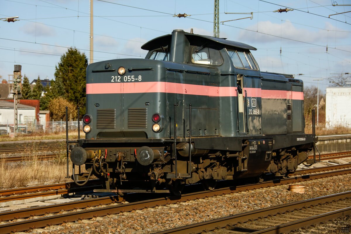 Hohberg - 20. Januar 2024 : Joseph Hubert Lok 212 055 mit Flachwagen (Bauzug ?) unterwegs in Richtung Süden.