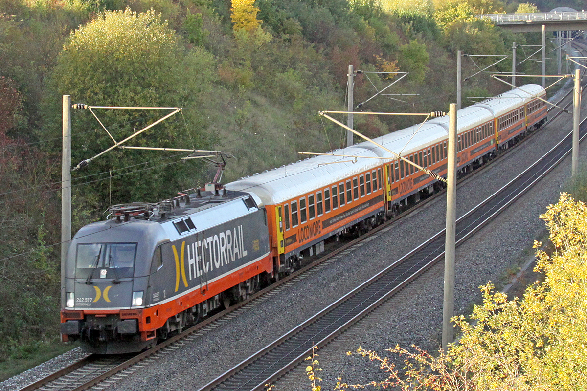 He is back!!! 242.517 "Fitzgerald" (182 517-3) Hector Rail AB mit dem Locomore (LOC 1819) von Berlin-Lichtenberg nach Stuttgart Hbf in Nennhausen. Der private Fernzug-Anbieter Locomore nam nach viermonatiger Pause am 24.08.2017 den Betrieb auf und fuhr zum ersten mal wieder nach Stuttgart. Stephan Kemnitz